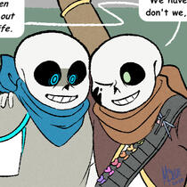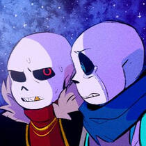 Undertale and Underfell happened first, UF and US ending up in UT due to fucking round and finding out with the machine in Sans' (Papyrus') lab around the same time. They began doing monthly meetings and get togethers, UF originally planning this as a tactic thing but began to enjoy the non murderous stress